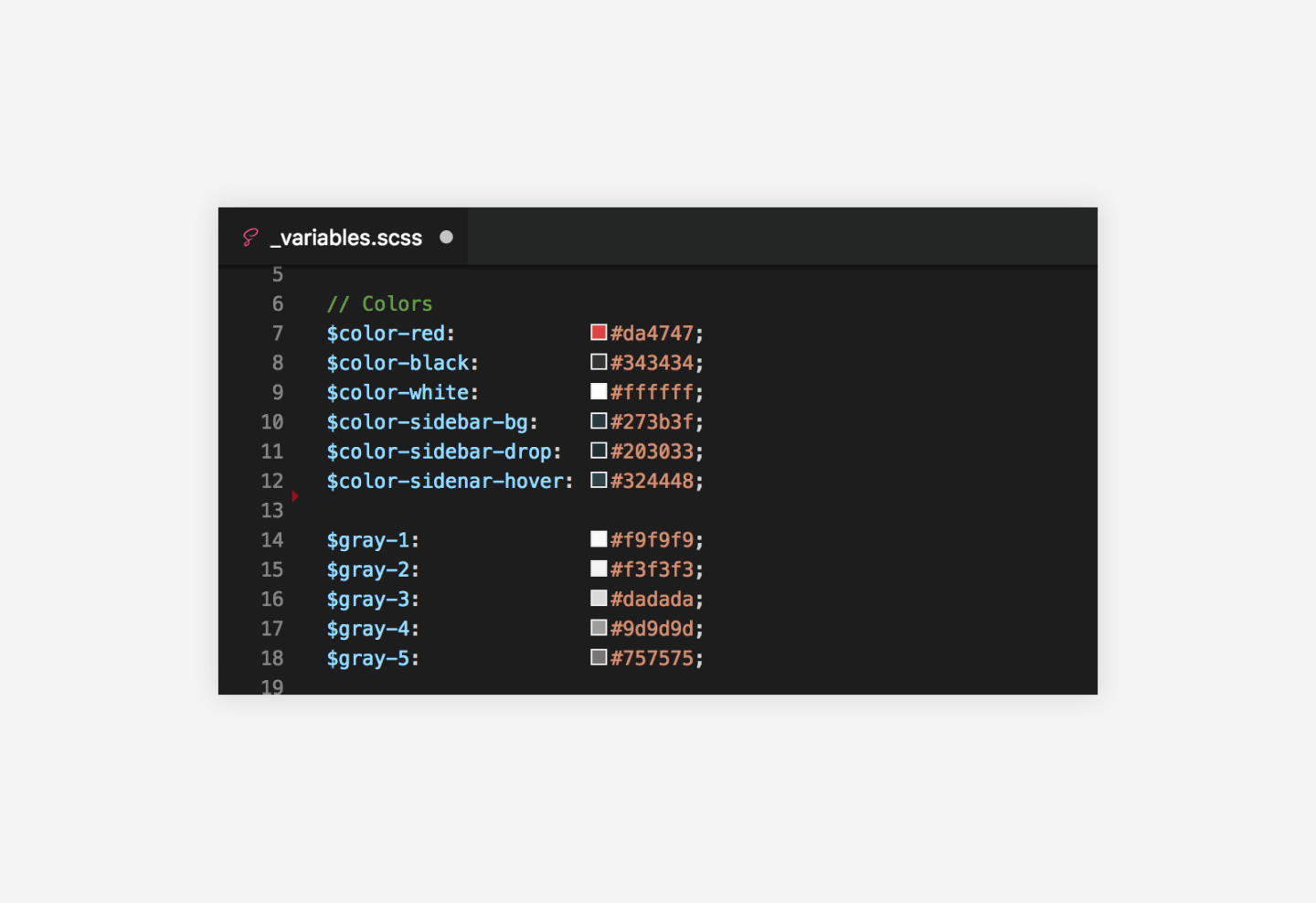 In the code, we used only the colors of the styleguide. And instead of using them as hex we used them as vars, In case we decide to change them in the future, we can change them in one place and it will change everywhere.