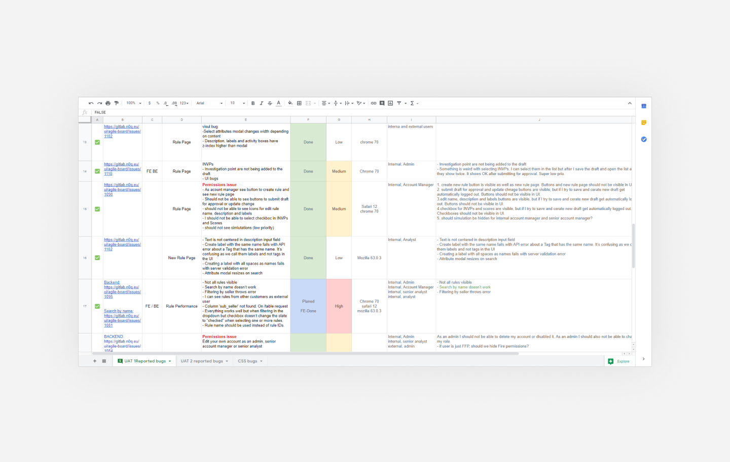 When the development started, we moved to physical standups (instead of slack) and printed a huge poster of all the pages to keep track of it and used sticky notes on it whenever its done or blocked.